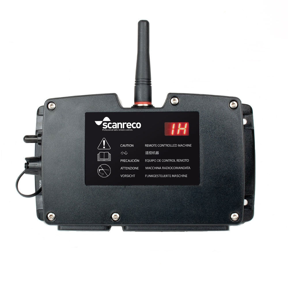 The receiver can only be activated by its dedicated Scanreco transmitter; no other transmitter or product can ever activate the receiver unintentionally. For maximum security, the receiver is equipped with dual processors that constantly monitor all data and outputs. In the unlikely event of an error or loss of the radio link from the transmitter, all outputs will immediately be shut down.