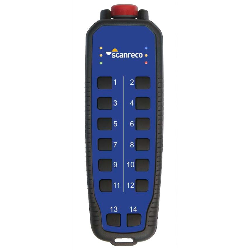 The Scanreco Rocket Flex offers a multitude of digital control functions as well as operator feedback. The transmitter has 14 push buttons in either one or two steps. Customization of the transmitter front label is possible by combining symbols and Text